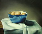 2008Titel: Kommetje en uien Techniek: Olieverf op katoen Formaat: 40 x 50 cm Jaar: 2007